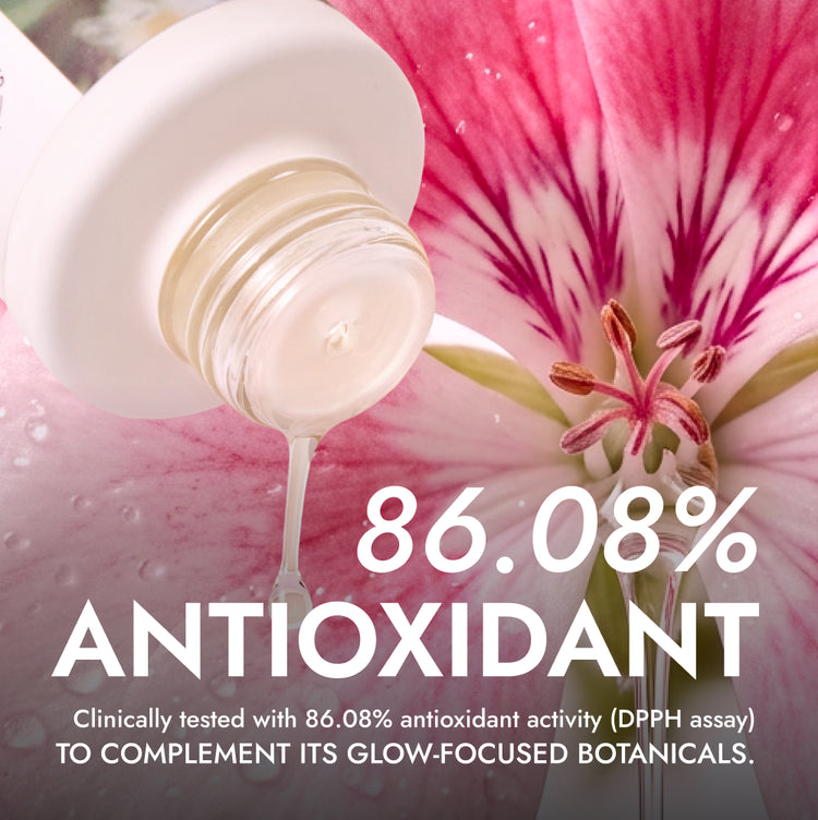 - Clinically tested with 86.08% antioxidant activity (DPPH assay) to complement its glow-focused botanicals.